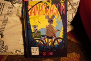 Auch einige neue Graphic Novels gibt es neu in der Schulbibliothek. Besonders gut gefallen hat mir das Buch von Kat Leyh mit dem Titel „Snapdragon“ (im Dt. „Löwenmaul“). Das Mädchen Snapdragon, genannt Snap, vermisst ihren Hund. Kann es sein, dass die alte wunderliche Frau am Ortsrand, die alle für eine Hexe halten, ihren Hund entführt hat? Aber Hexen gibt es doch nicht, weiß Snap ganz genau. Deswegen fährt sie zur Hexe, um es selbst heraus zu finden und ihren Hund zurück zu holen.