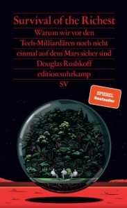 Das nächste Buch betrifft eher unsere Gegenwart: „Survival of the Richest : Warum wir vor den Tech-Milliardären noch nicht einmal auf dem Mars sicher sind“ von Douglas Rushkoff, in dem klargestellt wird, dass die Tech-Milliardäre die Welt nicht retten werden, sondern sie eher dem Untergang weihen wollen, um nur das Überleben der Reichesten zu sichern, ein irrer Gedanke, der aber eine hohe Wahrscheinlichkeit beinhaltet, wahr werden zu können. „Viele Tech-Unternehmer wollen uns Normalsterbliche einfach nur hinter sich lassen, werden aber als Visionäre gefeiert. Angesichts der Zerrüttungen, die ihre Geschäftsmodelle produzieren, müssen wir uns von ihrem Mindset befreien – denn mitnehmen werden sie uns auf ihrem Exodus sicher nicht.“ (Suhrkamp Verlag)